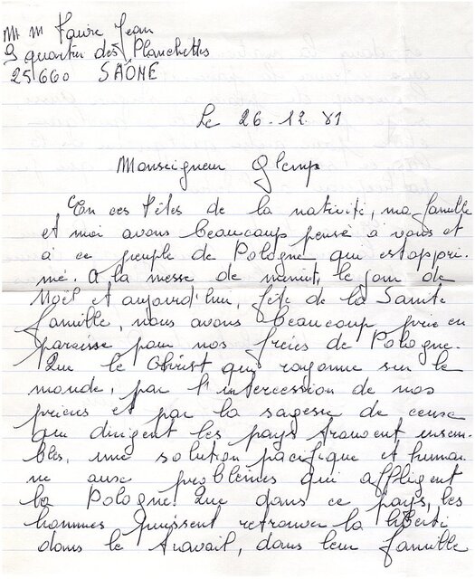 Kolekcja: | Archiwa > Francuskie listy do księdza kardynała Józefa Glempa z okresu stanu wojennego > 36-9909-10029 |