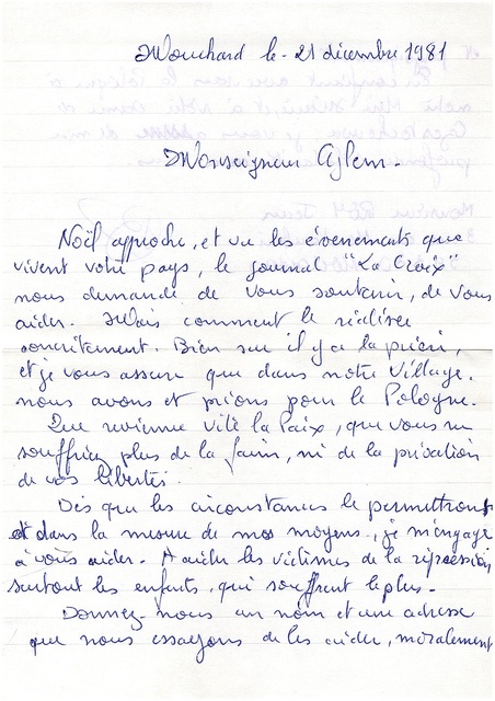 Kolekcja: | Archiwa > Francuskie listy do księdza kardynała Józefa Glempa z okresu stanu wojennego > 36-10796-10905 |