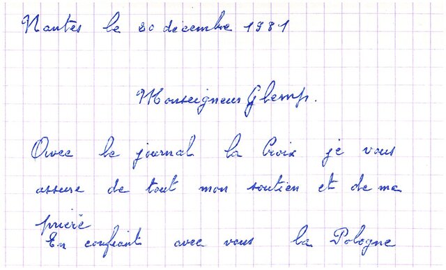 Kolekcja: | Archiwa > Francuskie listy do księdza kardynała Józefa Glempa z okresu stanu wojennego > 36-7831-7932 |
