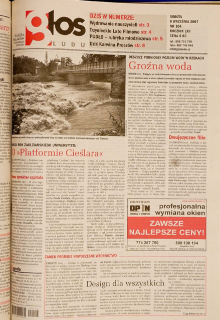 Opis: W podtytule: "Gazeta Polaków w Republice Czeskiej". Wydawany przez Kongres Polaków w RC w Czeskim Cieszynie, przy wsparciu finansowym Ministerstwa Kultury RC, "Głos Ludu" ukazywał się we wtorki, czwartki i soboty. Redaktor: Beata Schönwald