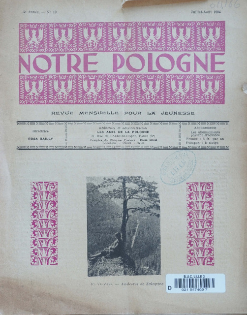 Słowa kluczowe: Notre Pologne ; Rosa Bailly ; Amis de la Pologne ; Paris ; Jeunesse