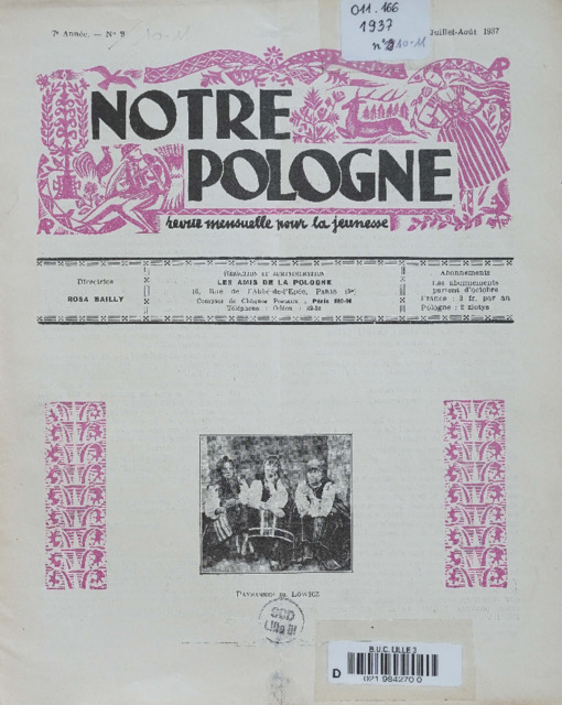 Opis: Directrice: Rosa Bailly. Rédaction et administration Les Amis de la Pologne. Paris
