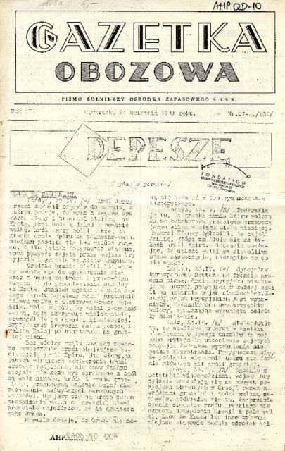 Opis: Pismo żołnierzy Ośrodka Zapasowego S.B.S.K. Wydanie A. Wydawca Oddział III Sztabu Komendy Ośrodka Zapasowego S.B.S.K. Maszynopis powiel.