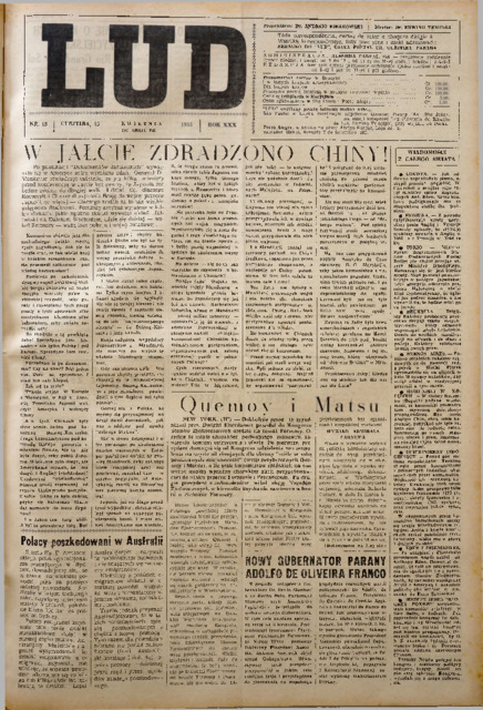 Słowa kluczowe: Prasa ; Brazylia ; Brasil ; Lud ; Curitiba ; Kurytyba ; Paraná