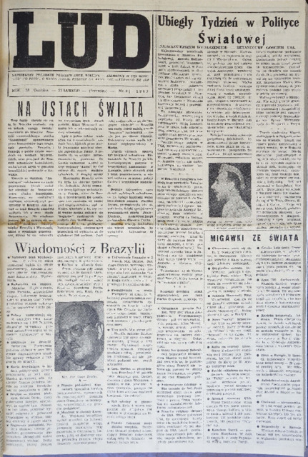 Opis: W nagłówku: "Lud" - najwiekszy tygodnik polski w Ameryce Południowej - założony w 1920 r. Curitiba (Kurytyba), Paraná, Brasil