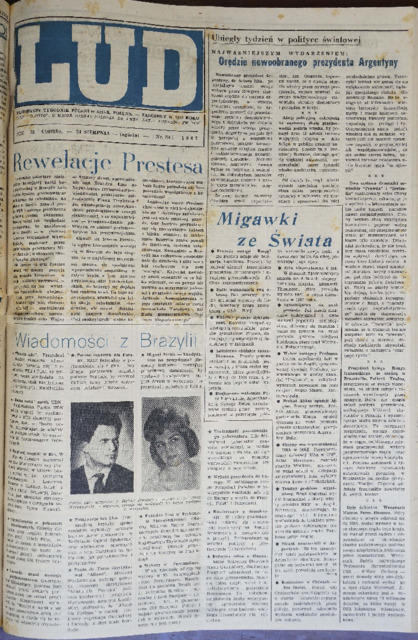 Opis: W nagłówku: "Lud" - najwiekszy tygodnik polski w Ameryce Południowej - założony w 1920 r. Curitiba (Kurytyba), Paraná, Brasil