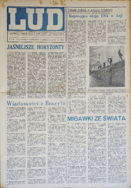 Opis: W nagłówku: "Lud" - najwiekszy tygodnik polski w Ameryce Południowej - założony w 1920 r. Director Domingos Wiśniewski. Redator" José Zając. Curitiba (Kurytyba), Paraná, Brasil