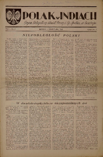 | Słowa kluczowe: | Prasa ; Indie ; Bombaj ; Polak w Indiach ; Delegatura Rządu RP |