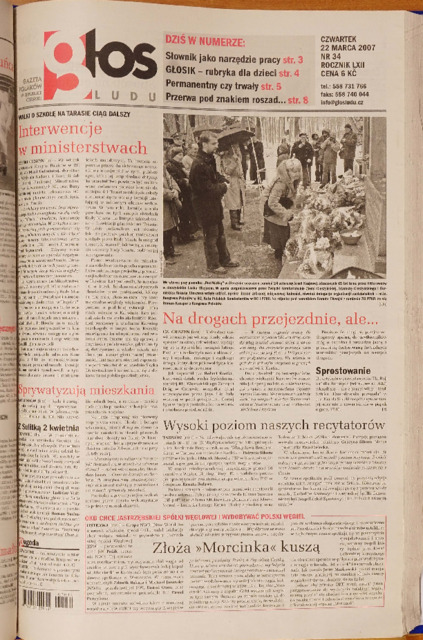 Opis: W podtytule: "Gazeta Polaków w Republice Czeskiej". Wydawany przez Kongres Polaków w RC w Czeskim Cieszynie, przy wsparciu finansowym Ministerstwa Kultury RC, "Głos Ludu" ukazywał się we wtorki, czwartki i soboty. Redaktor: Beata Schönwald