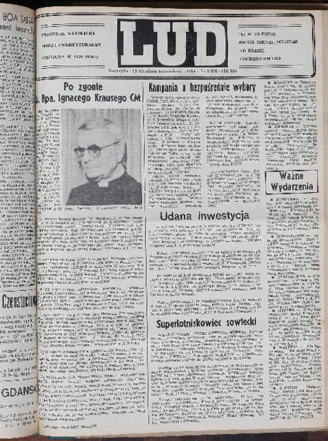 Opis: Tygodnik Katolicki Społeczno-Kulturalny - założony w 1920 r. "Lud" (O Povo) O Maiorjornal Polones da América Latina - fundado em 1920. Kurytyba, Paraná Brazylia