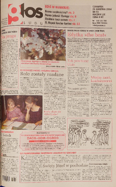 Opis: W podtytule: "Gazeta Polaków w Republice Czeskiej". Wydawana przez Kongres Polaków w RC w Czeskim Cieszynie, przy wsparciu finansowym Ministerstwa Kultury Republiki Czeskiej. Redaktor naczelny: Danuta Branna.