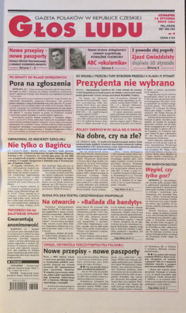 Opis: W podtytule: "Gazeta Polaków w Republice Czeskiej". Wydawana przez Kongres Polaków w RC w Czeskim Cieszynie, przy wsparciu finansowym Rządu Republiki Czeskiej. Redaktor naczelny: Henryka Bittmar. Miejsce wydania: Ostrawa