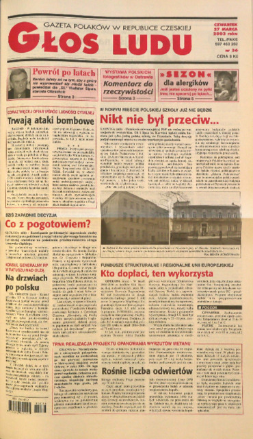 Opis: W podtytule: "Gazeta Polaków w Republice Czeskiej". Wydawana przez Kongres Polaków w RC w Czeskim Cieszynie, przy wsparciu finansowym Rządu Republiki Czeskiej. Redaktor naczelny: Henryka Bittmar. Miejsce wydania: Ostrawa