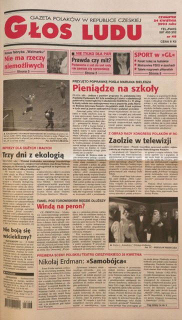 Opis: W podtytule: "Gazeta Polaków w Republice Czeskiej". Wydawana przez Kongres Polaków w RC w Czeskim Cieszynie, przy wsparciu finansowym Rządu Republiki Czeskiej. Redaktor naczelny: Henryka Bittmar. Miejsce wydania: Ostrawa