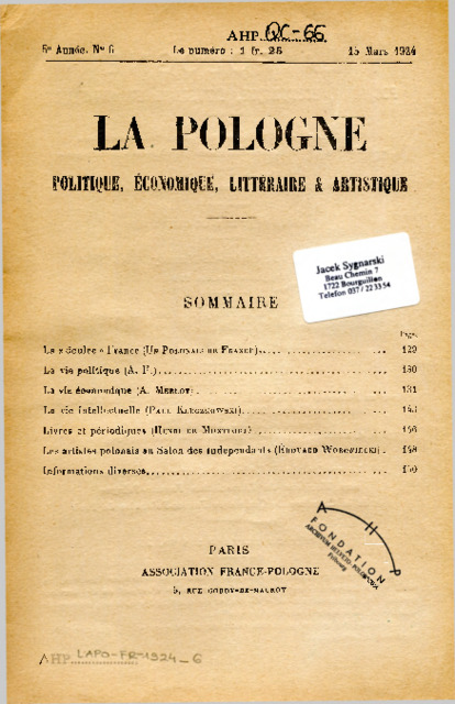 La Pologne : politique, économique, littéraire & artistique, 1924 No. '6 (15 mars)