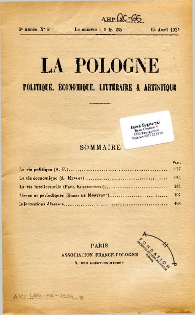 Kolekcja: | Prasa > La Pologne > 1924 |