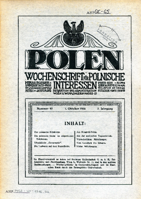 Polen : wochenschrift für polnische Interessen, 1916 'No. 92 (1. Oktober)
