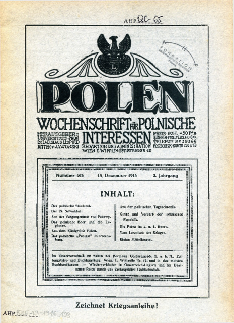 Polen : wochenschrift für polnische Interessen, 1916 No. 103 (15. Dezember)