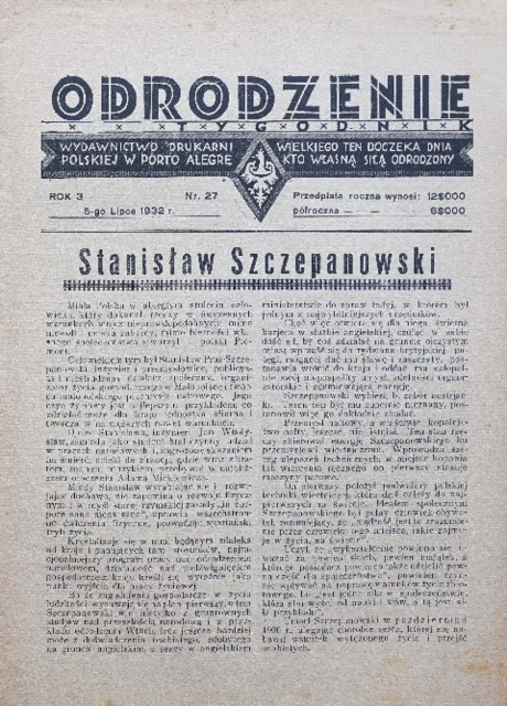Słowa kluczowe: | Prasa ; Brazylia ; Odrodzenie ; Porto Alegre ; Stanisław Służyński |