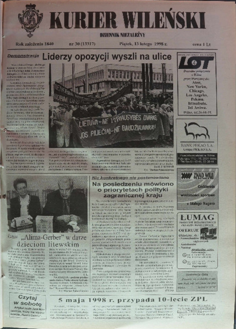 Kurier Wileński 1998 'No. 30 (13317) piątek 13 lutego