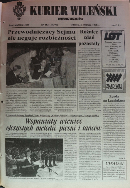 Kurier Wileński 1998 No. 103 (13396) wtorek 2 czerwca