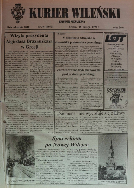 Kurier Wileński 1997 'No. 39 (13073) środa 26 lutego