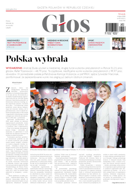 Opis: "Głos" - wcześniej "Głos Ludu". W podtytule: "Gazeta Polaków w Republice Czeskiej". "Głos" jest finansowany ze środków Ministerstwa Kultury RC, Ministerstwa Spraw Zagranicznych RP, Konsulatu Generalnego RP w Ostrawie, a także z Kancelarii Prezesa Rady Ministrów za pośrednictwem Fundacji "Pomoc Polakom na Wschodzie" i Stowarzyszenia "Wspólnota Polska".