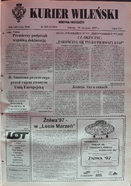 Kurier Wileński 1997 No. 169 (13203) sobota 30 sierpnia