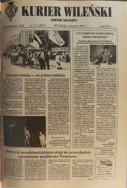 Kurier Wileński 1995 'No. 21 (12677) wtorek 1 sierpnia