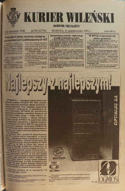 Kurier Wileński 1995 'No. 80 (12736) sobota 21 października