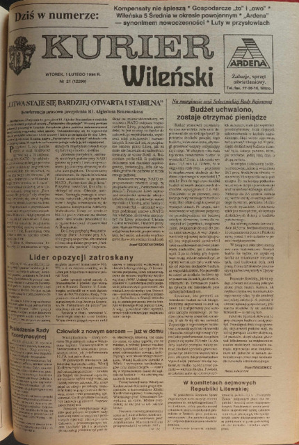 Kurier Wileński 1994 'No. 21 (12299) wtorek 1 lutego