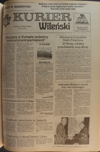 Kurier Wileński 1994 'No. 33 (12311) piątek 18 lutego