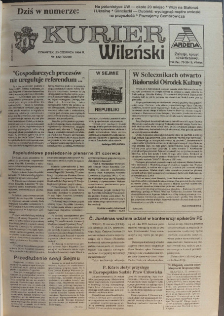 Kurier Wileński 1994 No. 122 (12398) czwartek 23 czerwca