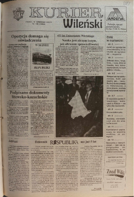 Kurier Wileński 1994 No. 182 (12458) piątek 16 września