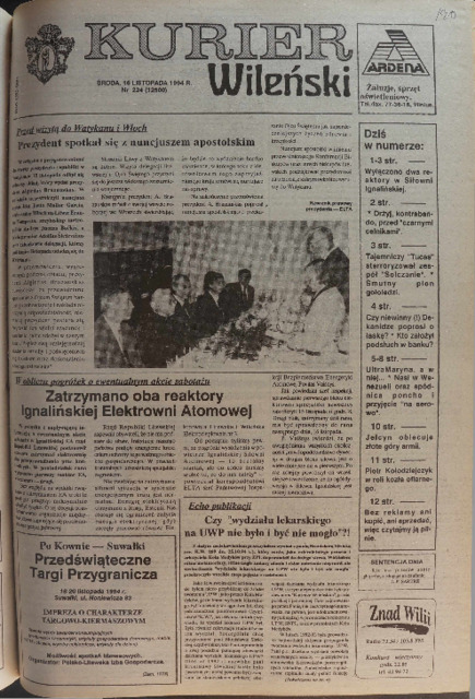 Kurier Wileński 1994 No. 224 (12500) środa 16 listopada
