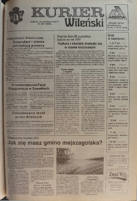 Kurier Wileński 1994 No. 227 (12503) sobota 19 listopada