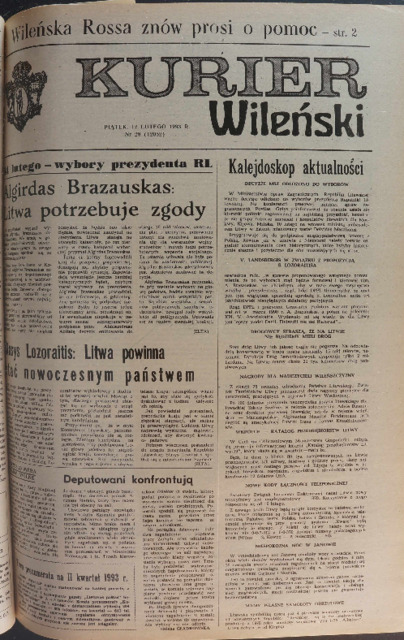 Kurier Wileński 1993 'No. 28 (12052) piątek 12 lutego