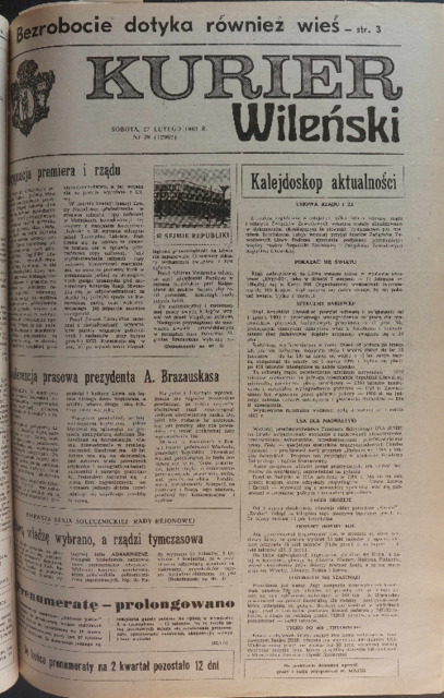 Kurier Wileński 1993 'No. 38 (12062) sobota 27 lutego