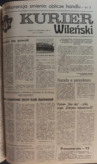 Kurier Wileński 1993 'No. 74 (12098) środa 21 kwietnia
