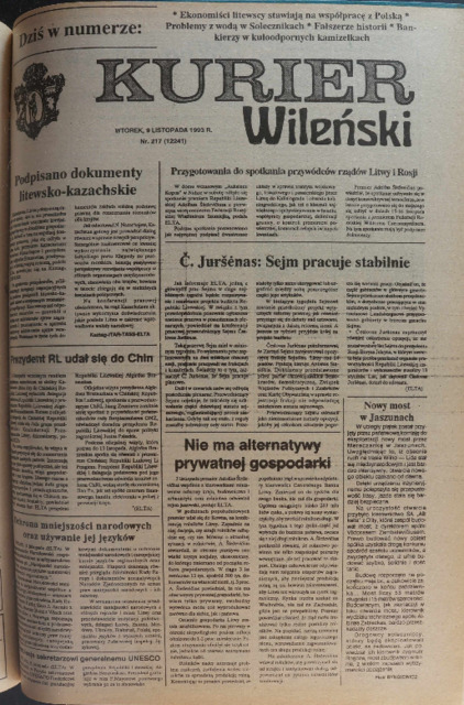 Kurier Wileński 1993 No. 217 (12241) wtorek 9 listopada