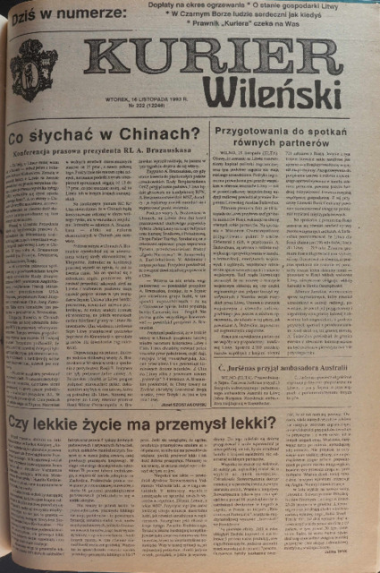 Kurier Wileński 1993 No. 222 (12246) wtorek 16 listopada