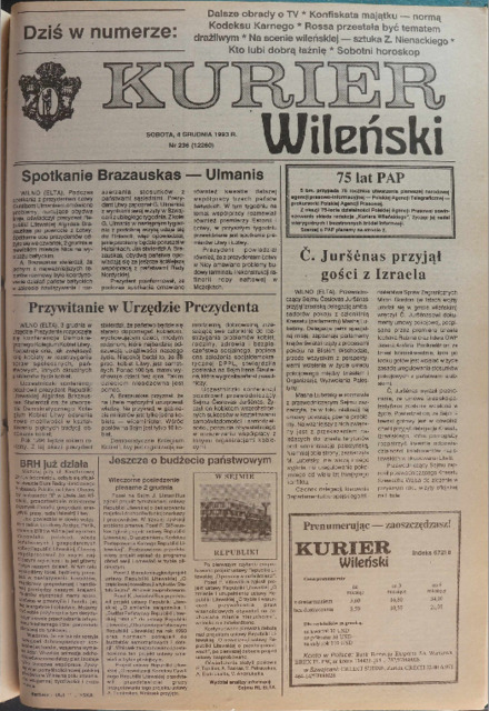 Kurier Wileński 1993 No. 236 (12260) sobota 4 grudnia