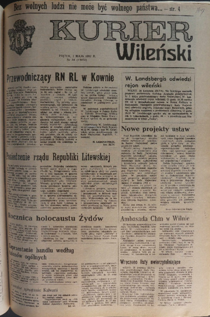 Kurier Wileński 1992 'No. 84 (11853) piątek 1 maja