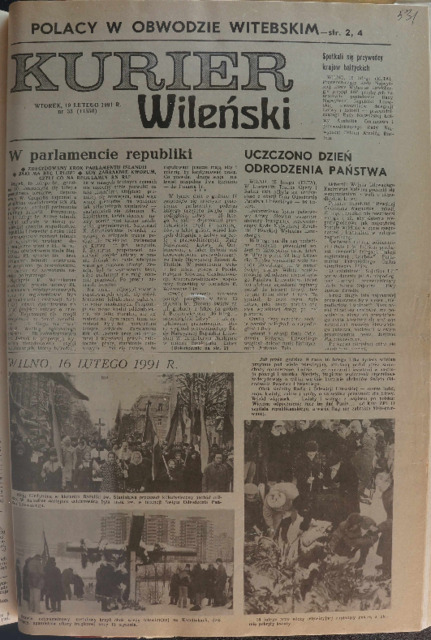 Kurier Wileński 1991 'No. 33 (11550) wtorek 19 lutego