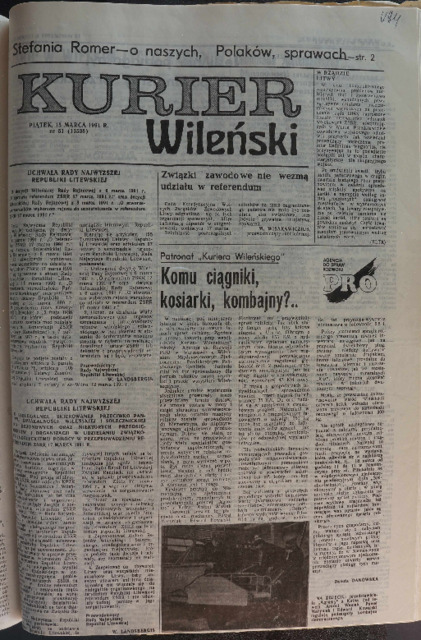 Kurier Wileński 1991 'No. 51 (11538) piątek 15 marca