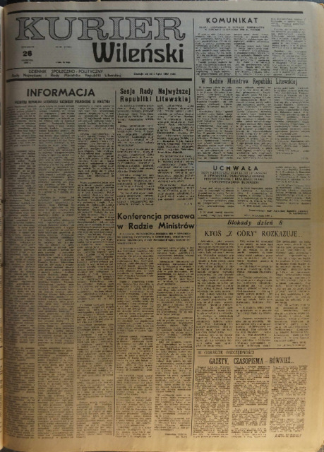 Kurier Wileński 1990 'No. 96 (11347) czwartek 26 kwietnia