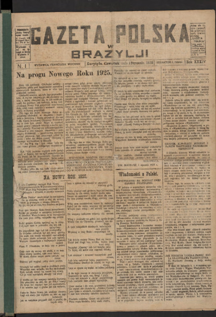 Gazeta Polska w Brazylji, 1925 No. '1 (1 stycznia)