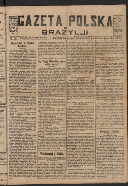 Gazeta Polska w Brazylji, 1925 No. '2 (7 stycznia)
