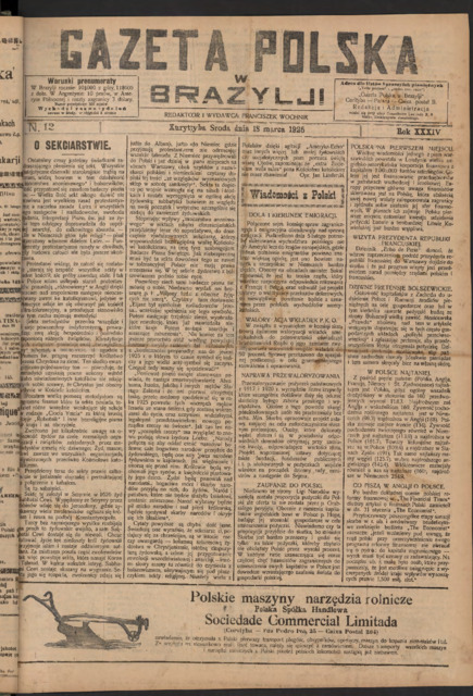 Gazeta Polska w Brazylji, 1925 No. 12 (18 marca)