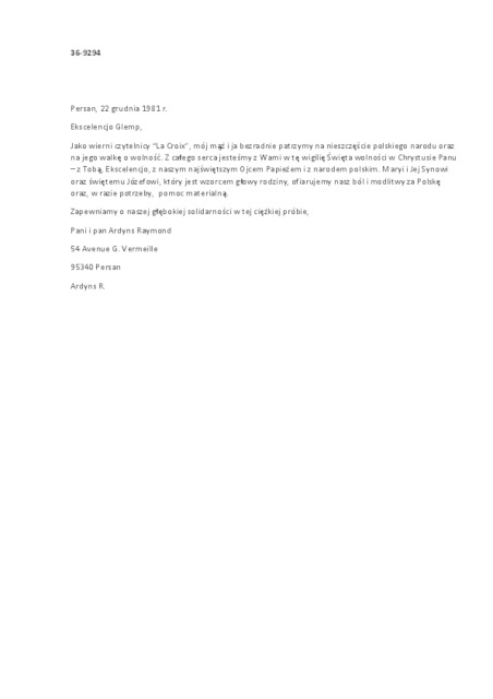 | Kolekcja: | Archiwa > Francuskie listy do księdza kardynała Józefa Glempa z okresu stanu wojennego > 36-9275-9428 |